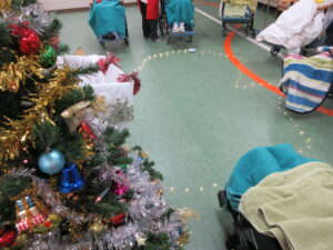 クリスマス会のメンバーとスタッフではじめに記念撮影